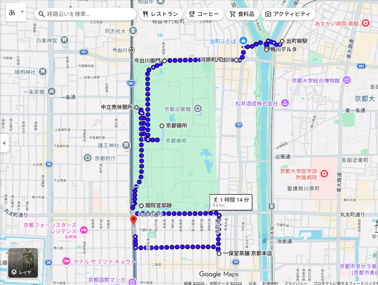 【ルートマップ】鴨川から御所へ。心洗われる3kmの旅