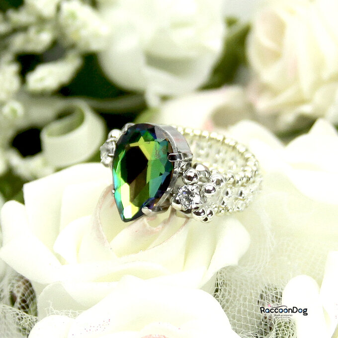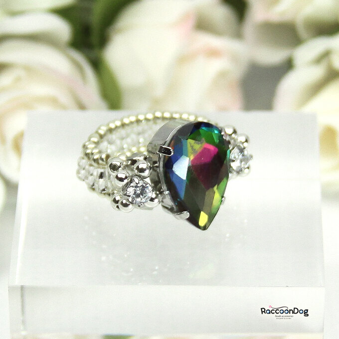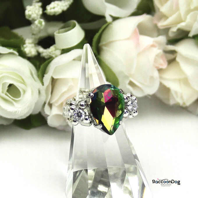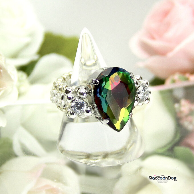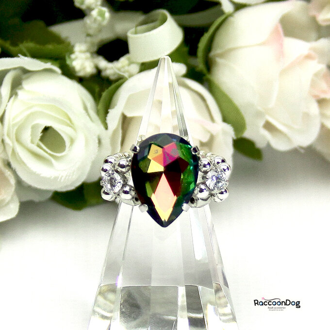 - 七色に輝く大粒ヴィトレルグラスストーン雫リング