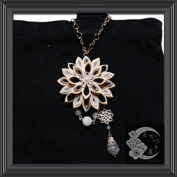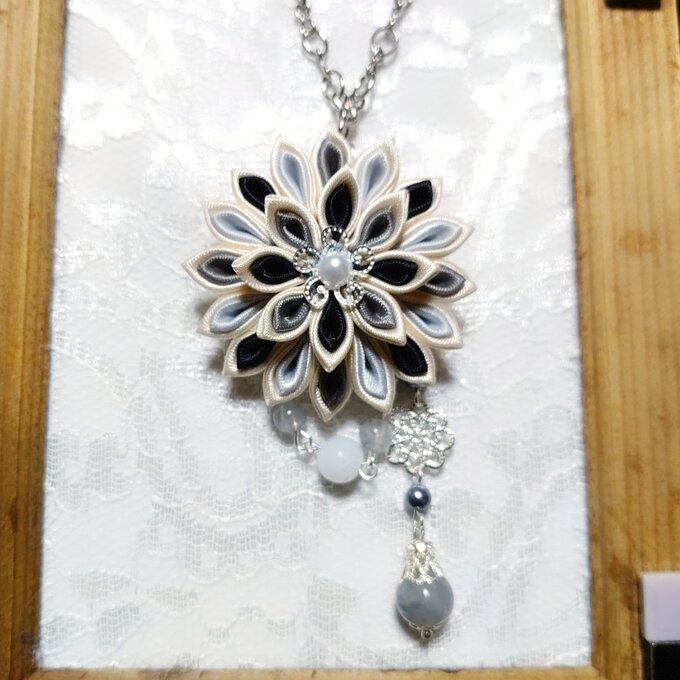 本革紐×蝶々と小花のロングネックレス/ペンダント金属アレルギ