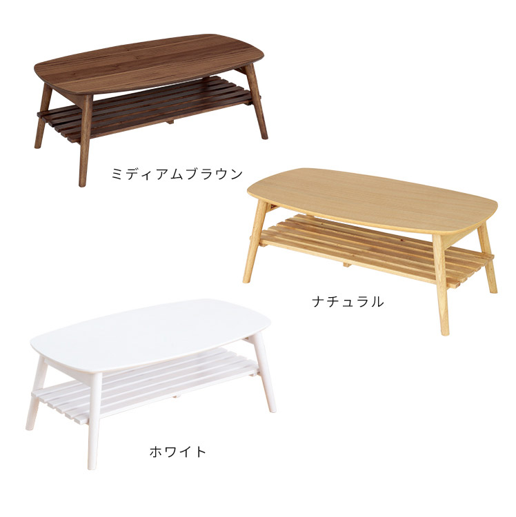 使わない時は折りたたんで収納できる便利な折りたたみテーブルに、棚板を取り付け更に利便性を求めた折りたたみテーブル「NOCELLO(ノチェロ)」。