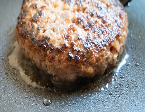 ・和牛の旨味甘みを引き出すスパイス練りこみハンバ ーグ職人が高速で叩き空気を抜く技で作り上げます