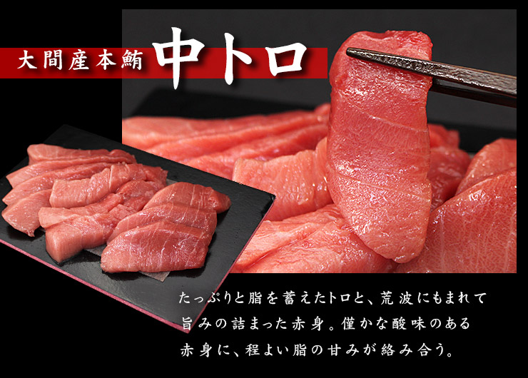 暮らし情報サイトのドリームライフ グルメの通販・お取り寄せ 大間産本マグロ中トロ150g 大間産本マグロ中トロ150g 9,800円(税込) ・中トロの人気の秘密は、「脂と赤身のバランス」。ほれぼれするような赤~白のグラデーションは、お口に入れるのをためらうほど! ・天然本マグロならではの濃厚赤身、脂の甘み、絶妙なバランスをご堪能下さい。 ・お刺身用にカット済みだから可食部100%、しかも自然解凍でOK! この商品を見た人はこんな商品にも興味があります 青森大間産本まぐろプレミアム大トロ 12,800円(税込) 本マグロ大トロ ウニ イクラ!豪華海鮮セット 4,980円(税込) 本まぐろ 大トロ 切落し 200g 3,980円(税込) 天然マグロ中トロ入り切り落とし150g 890円(税込) ミナミマグロ(インドマグロ)赤身 500g前後 4,350円(税込) 本マグロ大トロ200g 3,980円(税込) 築地直送 国産生本マグロ 大トロ 中トロ 赤身 柵600gセ 10,000円(税込) 大間産本マグロ赤身150g 3,480円(税込) 目鉢まぐろ赤身切り落とし(訳あり) 2,980円(税込) 築地直送 国産生本マグロ 中トロ赤身 6,900円(税込) まぐろたたき(生食用) 5,980円(税込) 天然本まぐろ中トロ1kg(訳あり) 4,980円(税込) 極上マグロ食べ比べセット 7人~10人前 13,600円(税込) 生本マグロ 赤身 大トロ 中トロ ブロック 6,900円(税込) 本マグロ 柵 200g 赤身 1,980円(税込) 黒潮本マグロ 2種盛り合わせ 円(税込) 訳あり 天然南まぐろ天身500g 2,980円(税込) グルメの通販・お取り寄せカテゴリ別